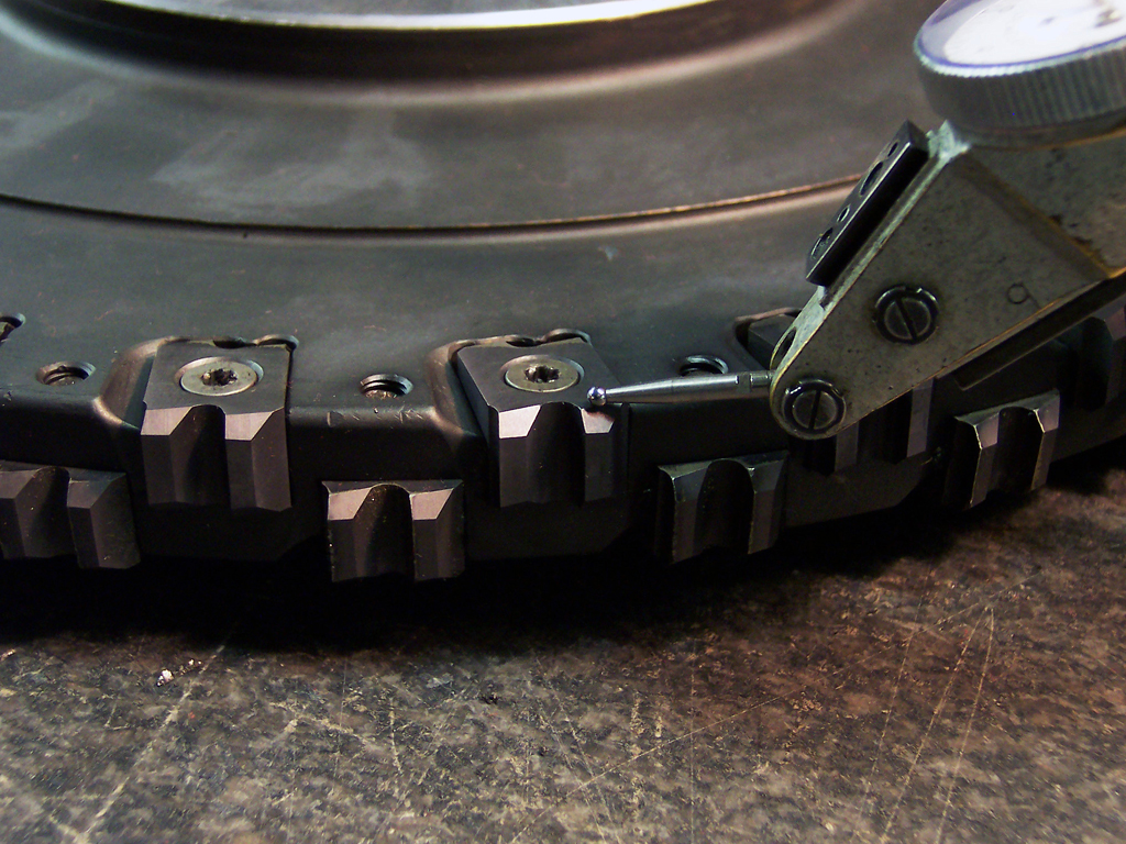 - Using an indicator, check insert face run-out. Also, check the step from wiper to highest insert if your cutter has wiper inserts.
