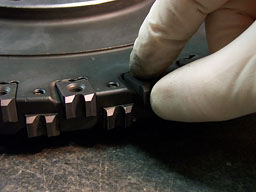 - Once seated, hold the insert into the back of the pocket by pushing with thumb or finger on cutting edge of insert.